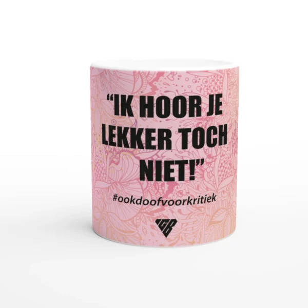 Begin je dag goed met deze stijlvolle mok van aardewerk met daarop de zin waarmee je elke discussie wint ‘Ik hoor je lekker toch niet!’. Perfect voor koffie, thee, warme chocolademelk of elk ander (warm) drankje. De glanzend witte afwerking laat de print prachtig uitkomen, met heldere kleuren en scherpe details. Dankzij het duurzame materiaal blijft de opdruk mooi, zelfs na veelvuldig gebruik in de vaatwasser of magnetron.