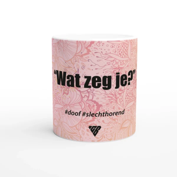 Begin je dag goed met deze stijlvolle mok van aardewerk met daarop een van de meest uitgesproken zinnen: Wat zeg je? Perfect voor koffie, thee, warme chocolademelk of elk ander (warm) drankje. De glanzend witte afwerking laat de print prachtig uitkomen, met heldere kleuren en scherpe details. Dankzij het duurzame materiaal blijft de opdruk mooi, zelfs na veelvuldig gebruik in de vaatwasser of magnetron.